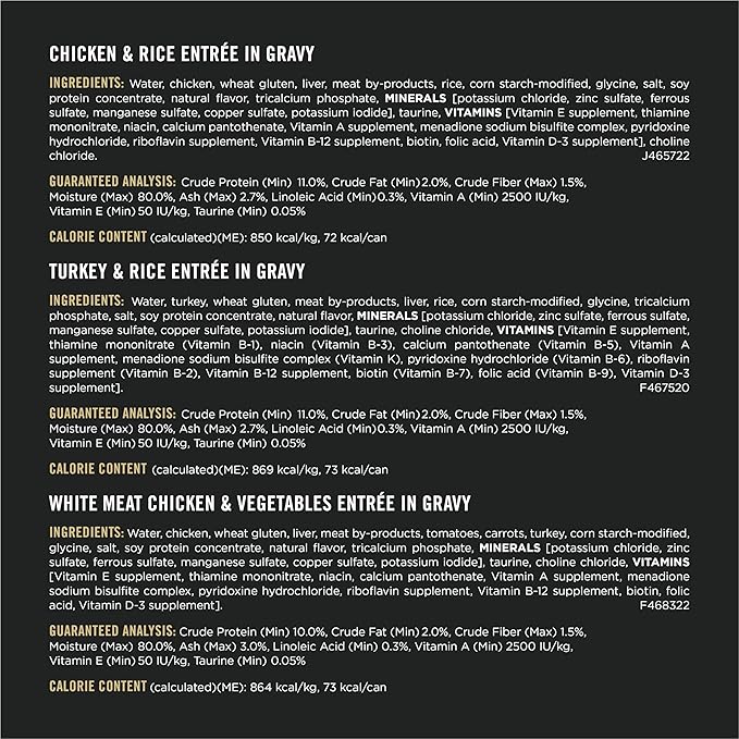Purina Pro Plan Gravy, High Protein Wet Cat Food Variety Pack, Complete Essentials Chicken and Turkey Favorites - (2 Packs of 12) 3 oz. Cans