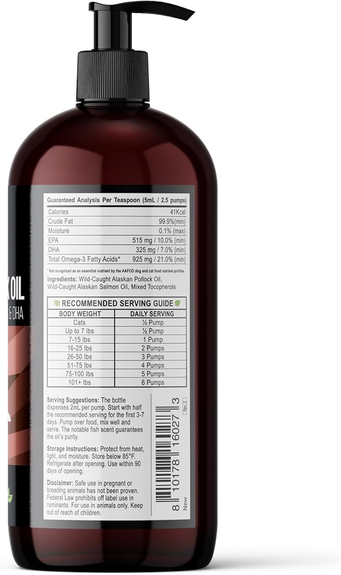 - FOR SHINY COATS & ITCHY SKIN -- Our wild Alaskan salmon fish oil will give your pet the soft and shiny coat you are looking for. Features an advanced omega-rich blend that works wonders on dry and itchy skin. Our specially purified pet salmon oil has a mild scent. Picky eaters love the taste and will gobble it right up.