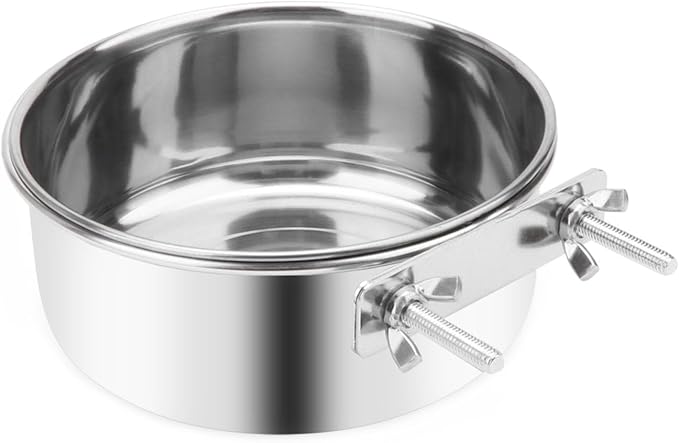 Pet Food Water Bowl with Clamp Holder Stainless Steel Coop Cup Hanging Feeder for Dog Bird Parrot Cat Rabbit (L)