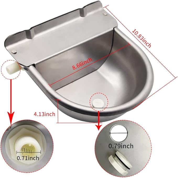 - Automatic stock waterer with drainage hole,easy to clean.Water inlet:1/2''