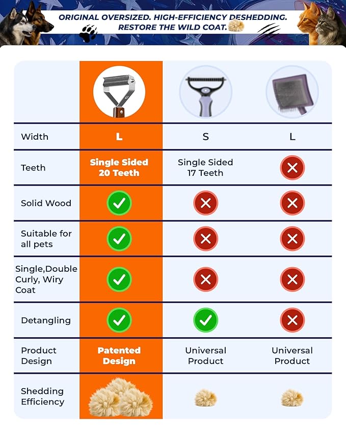 Dog Brush for Shedding 20 Blade Dematting Tool Pet Brush, Undercoat Rake for Large Medium Small Dogs and Cats, Shedding Dog Comb for Grooming, Premium Wood Handle, Efficiently Detangle and Groom Coats