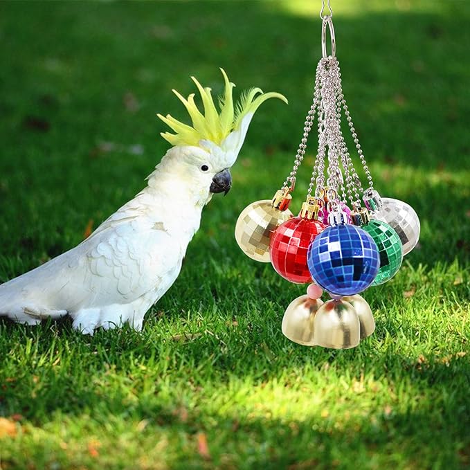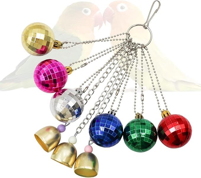 - Colorful and Entertaining Design: Our bird toys feature 6 vibrant balls adorned with reflective squares and 3 melodic metal bells, creating a visually stimulating and entertaining accessory for birds.