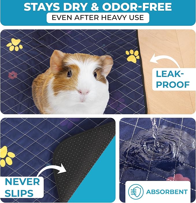 - Washable, Reusable & Budget Friendly - Comes in a convenient 2-pack so you always have a clean liner ready. Machine washable and reusable up to 200 times, outlasting standard guinea pig pads while offering a sustainable, cost-effective alternative to disposables.