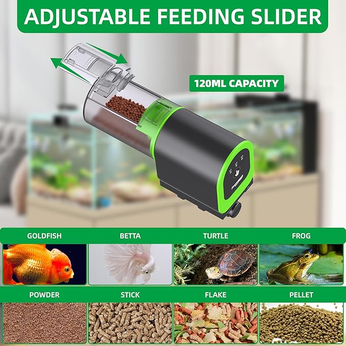 - 【Unique Design】: Rechargeable Automatic fish feeder for aquarium is suitable for various fish food, such as flakes, granules, powder, and strips. No matter what type of fish food you prefer, our feeders are perfectly compatible