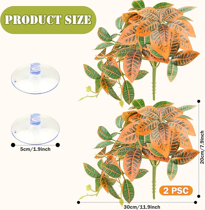 - Artificial Leaves Habitat Decorations: Made with non-toxic plastic and soft silk leaves, clear texture and bright color, creates a fun & dynamic hiding spot and climbing for reptile amphibians.