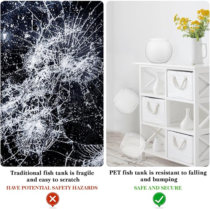 - Versatile Decoration: The round fish bowls transparent design enhances your environments aesthetic by showcasing colorful fish and plants serving as an eye-catching plastic goldfish bowl or a decorative fish box desktop accessory