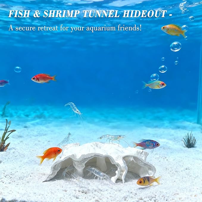 - ✅ Easy to install, suitable for various bottom environments: The shelter is designed for submerged water, with sufficient weight, and sinks and is stable when submerged. Round and angular, the surface has been carefully treated to avoid any risk of scratches. No need for glue or tools, it can be easily placed on bare tanks, bottom sand, or water grass mud