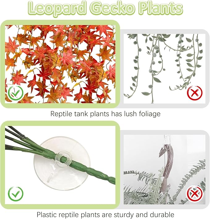 - Easy to Use and Maintain: BNOSDM reptile enclosure plants set is convenient to use, equipped with suction cups and zip ties for secure placement. Unlike real plants, reptile plant decoration require almost no additional care, making them ideal for busy pet owners. Please wash all plants before use