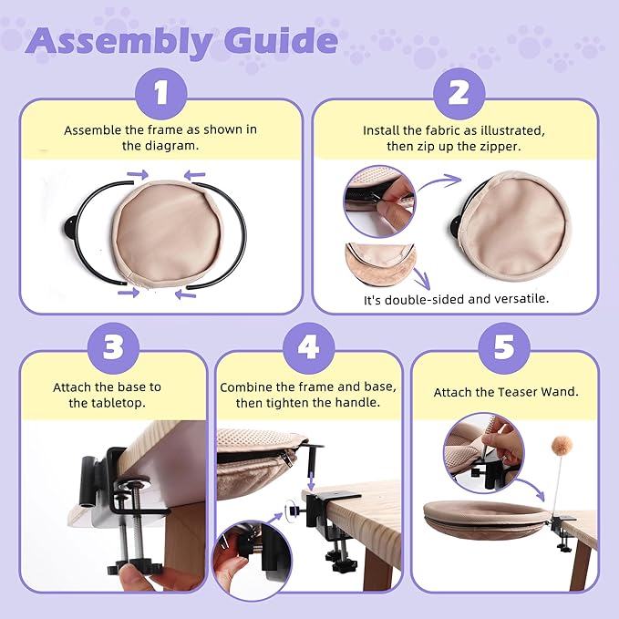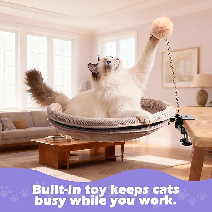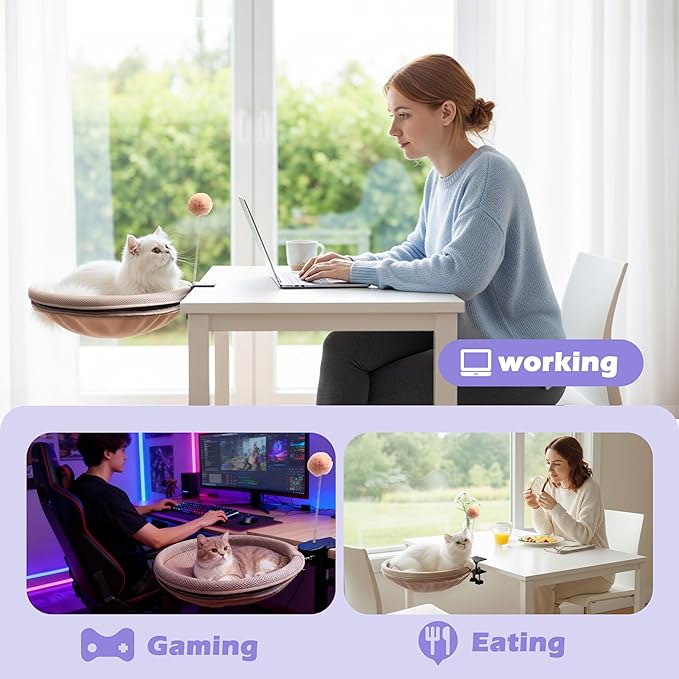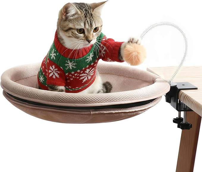 - ⚙️ 【30-Second Tool-Free Installation】 No tools, no drilling, no hassle! Simply attach the robust clamp to your desk and tighten the knob. Within half a minute, you can create a beloved spot for your cat. The universal design fits most office desks, computer desks, and study tables effortlessly.