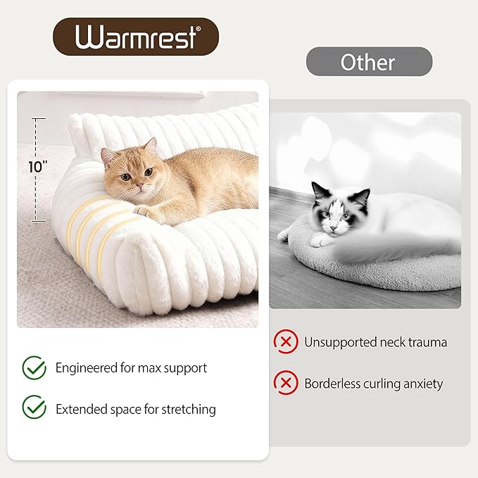 - [Tri-Side Bolster Support]: The WARMREST cat couch or dog couch features a 3-sided high-back bolster that offers secure head and neck support—perfect for small dogs, indoor cats, and pets that love curling up or stretching out.