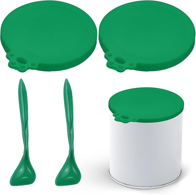 Cat Food Can Covers Lids, Dog Food Can Lids with Spoons Silicone Toppers Reusable Fits 3 Standard Sizes, (Forest Green, 2Sets), Intended for Dog/Cat/Pet Food