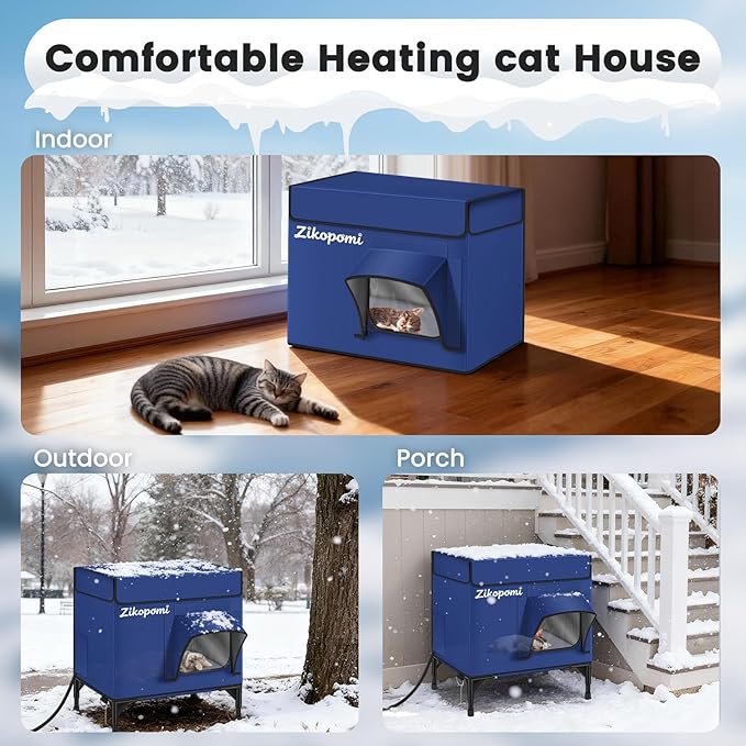 - Your Kindness Carries Warmth - Zikopomi heated cat house provide a comfortable heating range of 30–45°C / 86–113°F. The weatherproof design keeps cats dry and shielded from harsh conditions, ensuring they stay warm as spring even in the coldest winters. These shelters offer a cozy refuge for stray animals with nowhere else to go.
